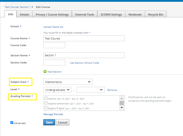 For organizations who integrate directly with Schoology, their users will need to ensure their classes have the Subject Area of Mathematics and are part of an active Grading Period in order to sync over.