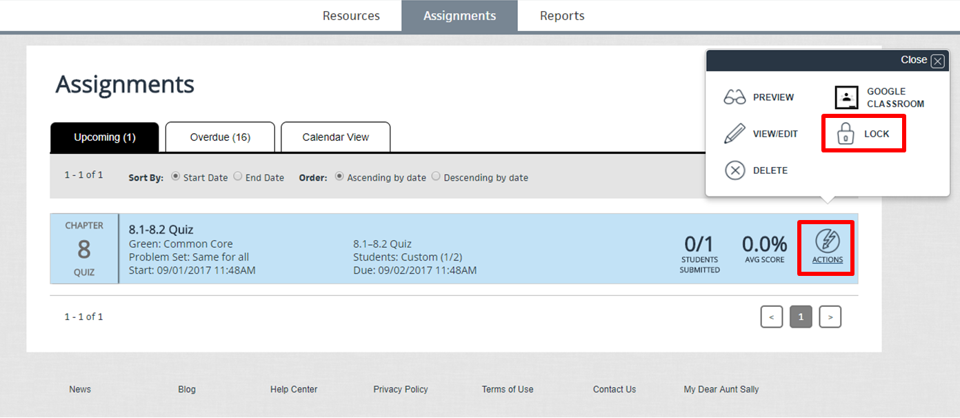 Teachers can now lock and unlock their assignments in the event of an unexpected interruption, or to prevent an assignment from being submitted past its due date.