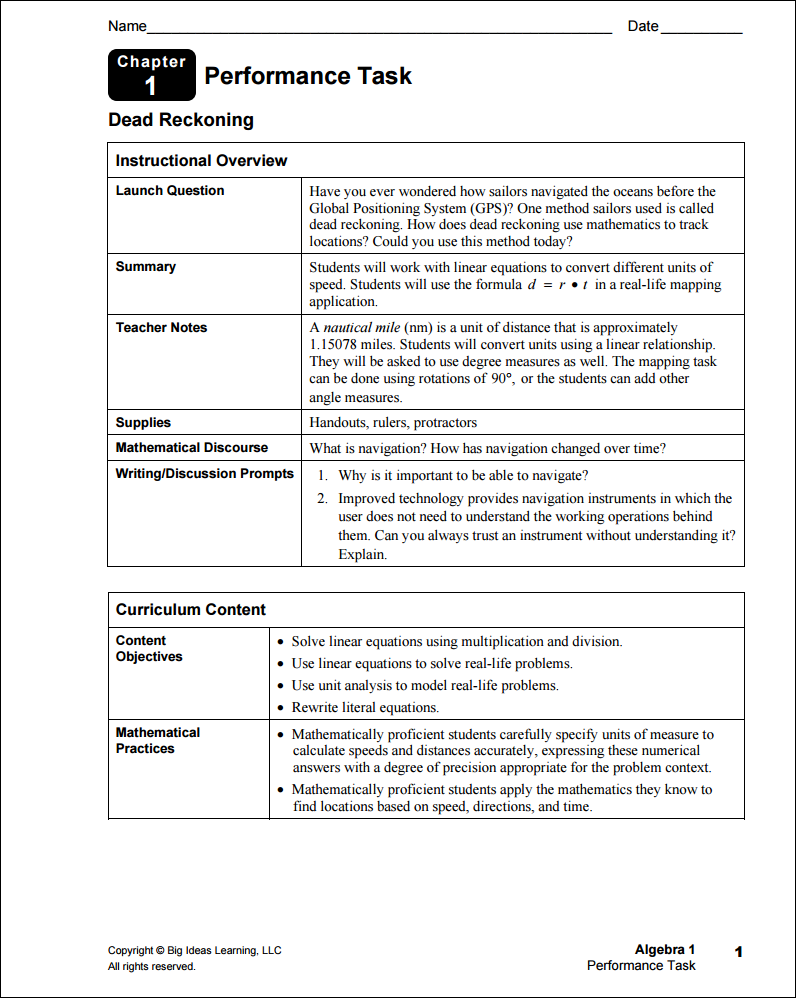 The Performance Tasks allow students to apply their knowledge of multiple content standards and work through realistic scenarios.