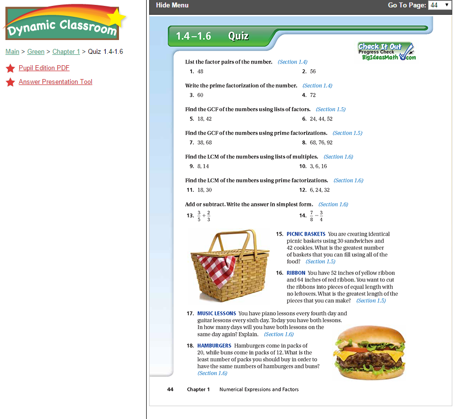 Similarly to the Mid-Chapter Quiz, the End-of-Chapter Quiz provides educators with an opportunity to assess student concept comprehension for the second-half of the chapter. The End-of-Chapter quiz can be found at the end of every chapter in the middle school textbooks. There is also an end-of-chapter quiz online for the middle and high school programs in the Dynamic Assessment System.