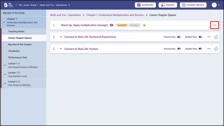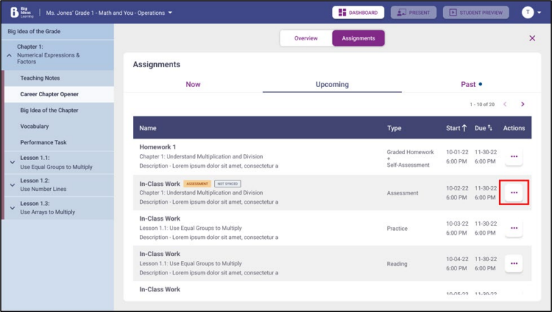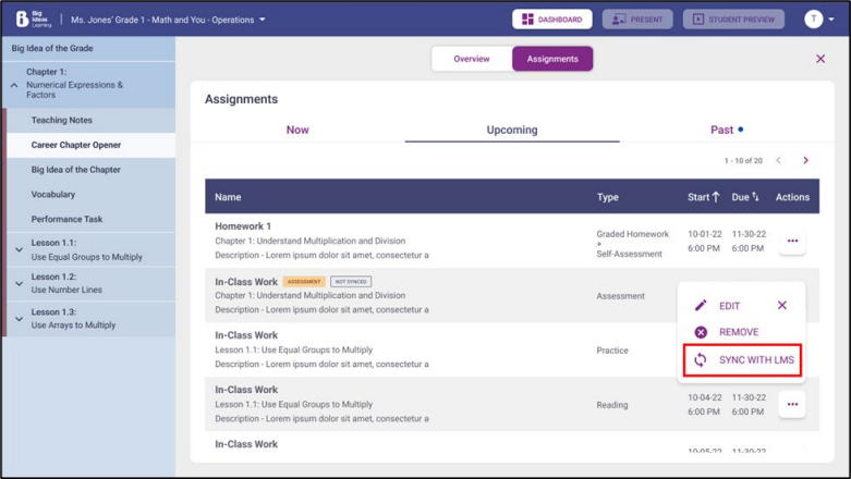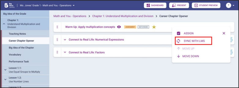 If the assignment fails to sync with the LMS, the teacher can manually sync it from