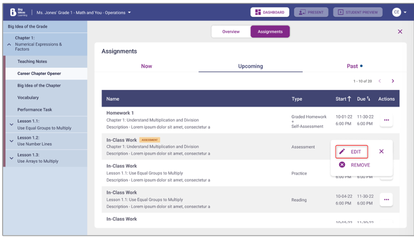 Note Assignments in the Now and Past tabs cannot be edited.
