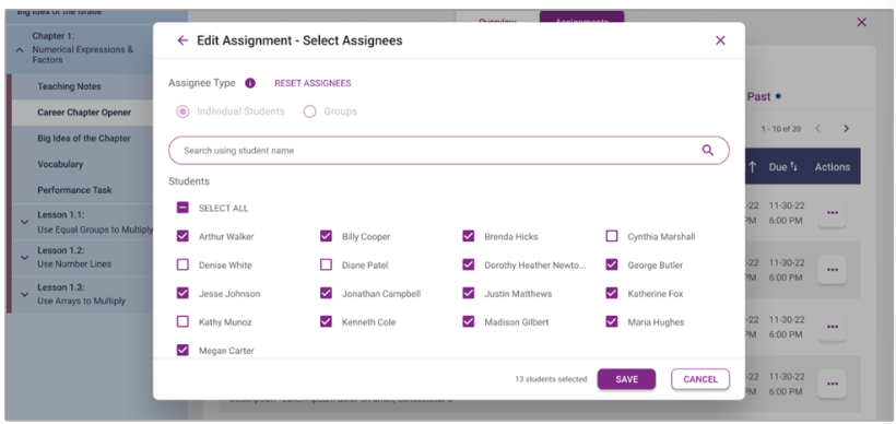 type will default to Individual Students and cannot be changed to Groups.