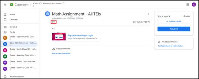If the assignment is system-graded, students will see their grades within a few minutes. However, if the assignment requires manual grading by the teacher, students will have to wait until the teacher completes the grading.