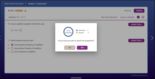Upon doing so, a confirmation modal will appear, showing how many questions