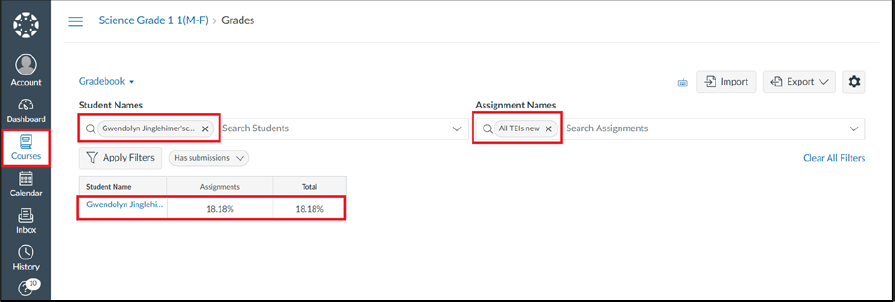 In the By Content tab the teacher can view the list of all the content. By clicking the Evaluate icon next to a content name, the teacher can see the student's responses and grade them accordingly.