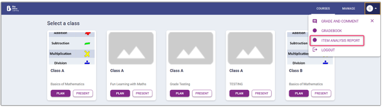 Select ITEM ANALYSIS REPORT from the Profile menu in