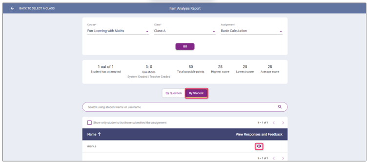 Choose a Course, Class and Assignment and select