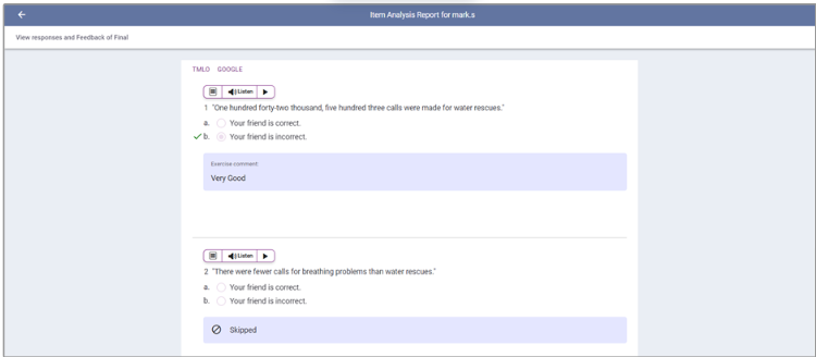 View the item analysis report.