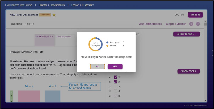 Upon doing so, a confirmation modal will appear, showing how many questions