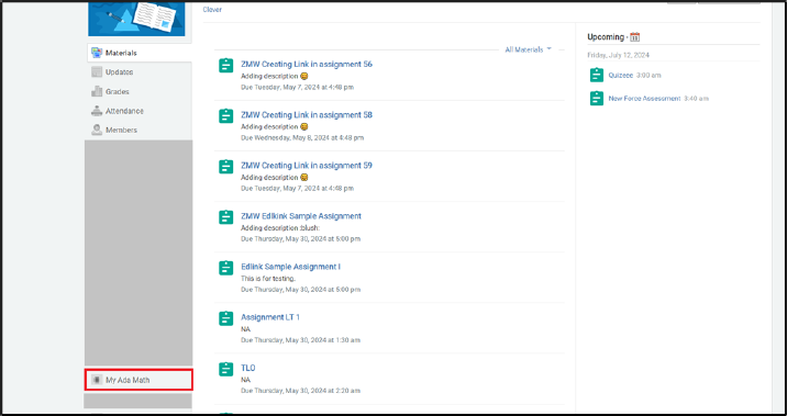 Selecting the My Ada Math app will redirect the student to the Clever portal