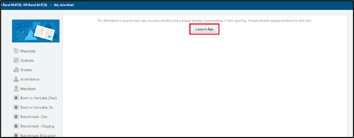 When the Student selects the Launch App button, they
