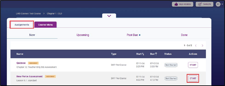 can see a list of all New, Upcoming, Past Due, and Completed assignments.